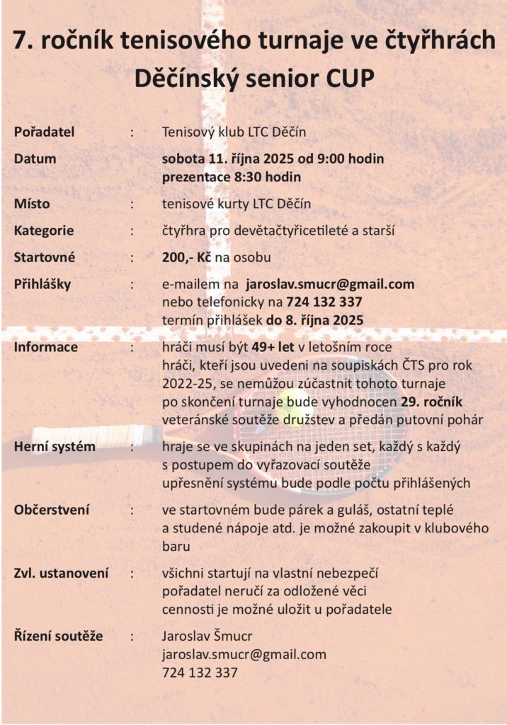 15.52025 (čtvrtek) veteráni TK LTC Děčín-Slovan Jiřetín od14,00 hod.